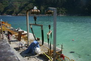 Al no proporcionar abrigo suficiente el espigón, los pesqueros son "sobordados" -izados al muelle- por medio de puntales, que denominan "monaguillos", aunque también se dispone de una grúa de 5 Tm.